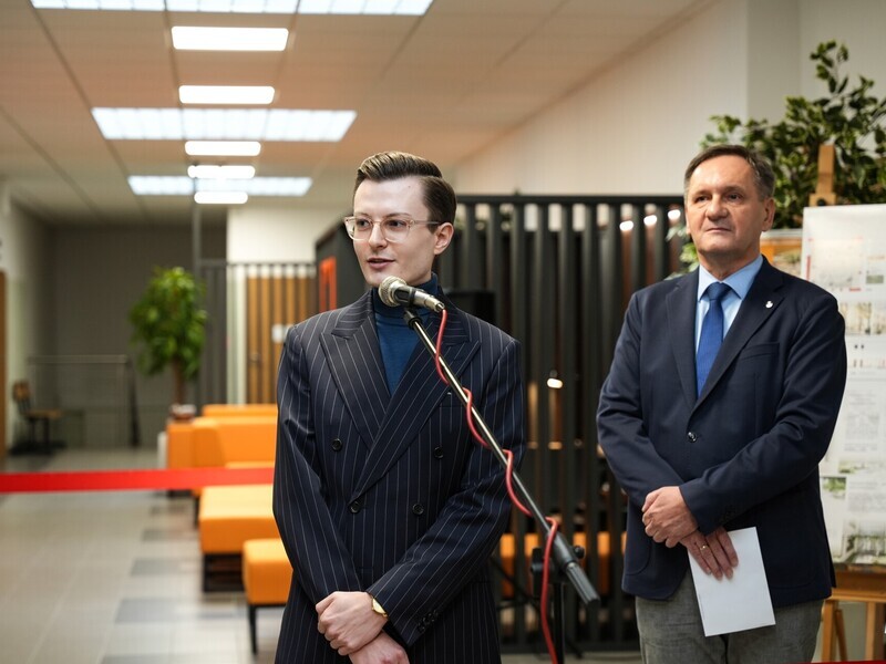 Dziekan Wydziału Mechanicznego dodaje, że przy realizacji pomogła firma Aliplast, dostarczając aluminiowe panele, które nadały przestrzeni lekkości i nowoczesnego charakteru.