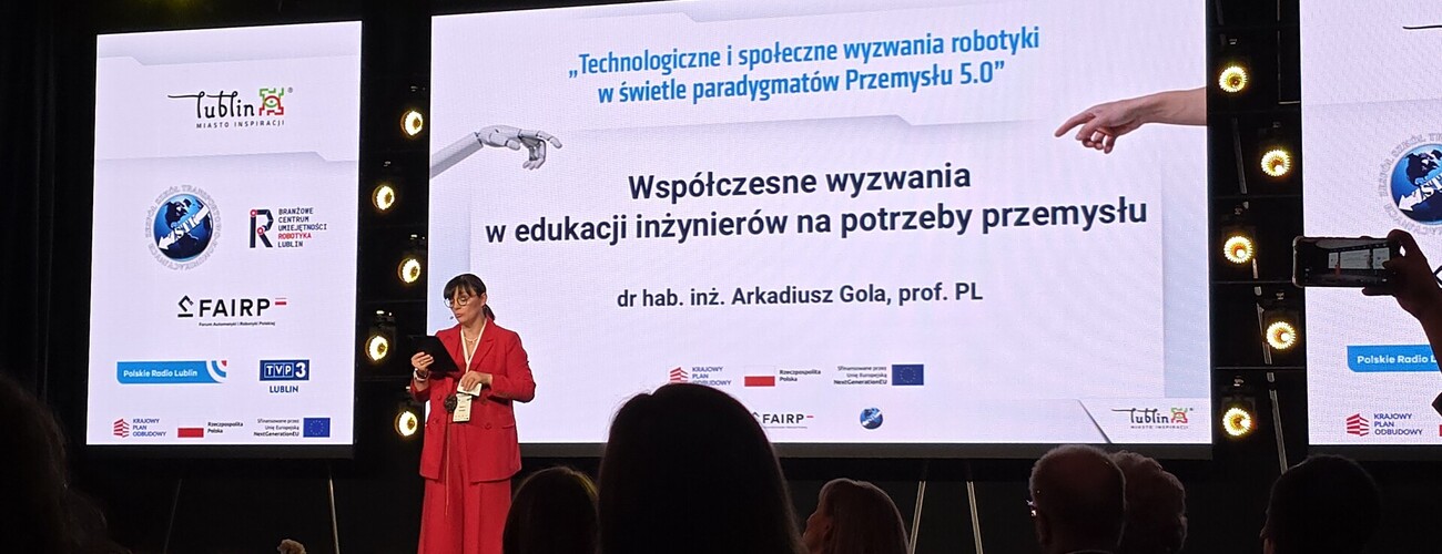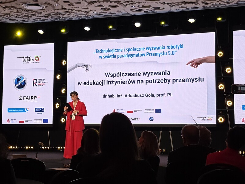 Wśród prelegentów znalazł się również dr hab. inż. Arkadiusz Gola, prof. uczelni – Kierownik Katedry Informatyzacji i Robotyzacji Produkcji, który w swoim wystąpieniu poruszył kwestie dotyczące kształcenia przyszłych inżynierów oraz dostosowania edukacji do dynamicznie zmieniających się potrzeb nowoczesnego przemysłu.
